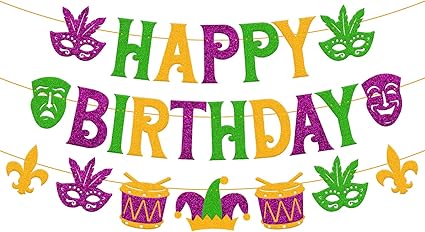 Amazon Com Mardi Gras Happy Birthday Banner It S My Mardi Gras Birthday Theme Carnival Fleur De Lis Shrove Fat Tuesday New Orleans Masquerade Party Supplies Toys Games